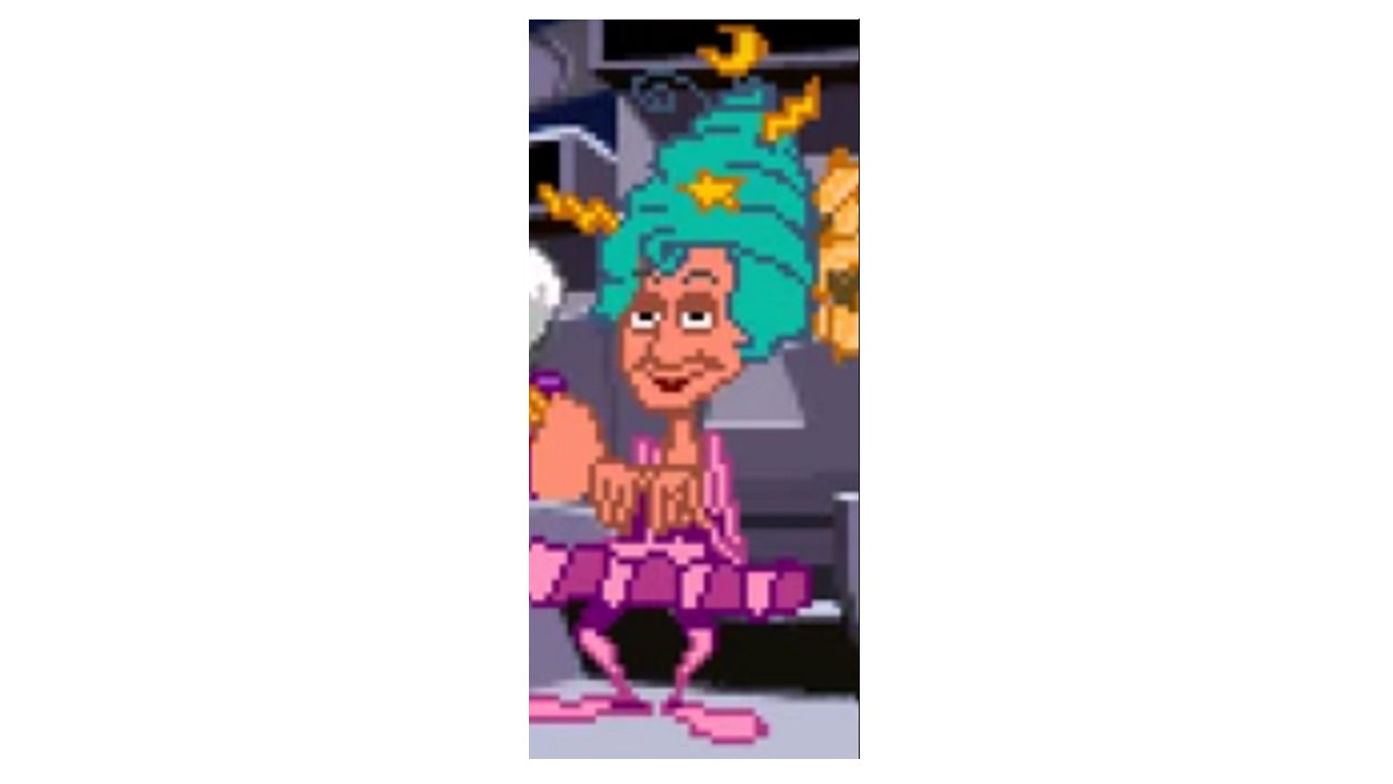 In Maniac Mansion: Day of the Tentacle, the main character Laverne is sent to the future, where Tentacles rule, and forced to enter a human beauty contest (similar to a dog show). One of the contestants is Harold, who is described as male but dressed as a woman. Harold acts slightly effeminate and has an overstated French accent. This character also looks very similar to the game’s representation of George Washington.