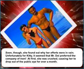 Micahel Doi is Kitty-N’s dance instructor in Bust a Groove 2. In her storyline, it is explained that she had a crush on her dance teacher, Michael, before she learned he was gay (image below). A video of them dancing together can be seen here. He is portrayed as very stereotypically gay in the game. Michael is one of the unlockable playable characters in the game.