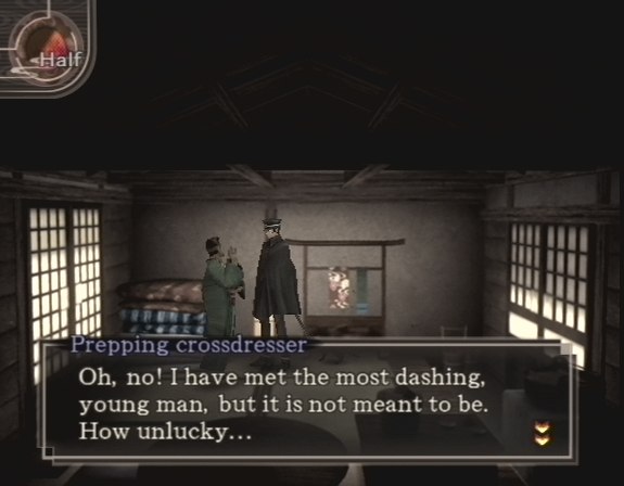 When the player is chasing down Tatsumi, they run into an NPC who is labelled “Crossdresser” (image below).