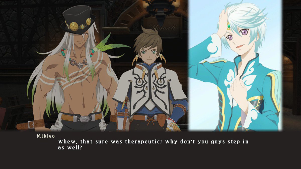 In Tales of Zestiria, the main character Sorey and his best friend Mikleo are heavily implied to be in a relationship. Neither character shows more than a passing interest in the opposite sex, and many of the other characters express envy of the bond that the two share. They are shown to be very physically comfortable around one another, and one of the unlockable titles for Mikleo in the game (a descriptor that can be assigned to a character that has cosmetic or statistical effects on that character) is “One and Only”. Furthermore, game producer Hideo Baba described Mikleo in an interview with Side B-N (Bandai Namco’s informational/advertising magazine) as Sorey’s one and only. (“スレイにとって、唯一無二の存在です。”)