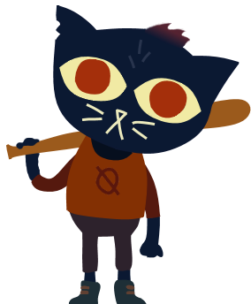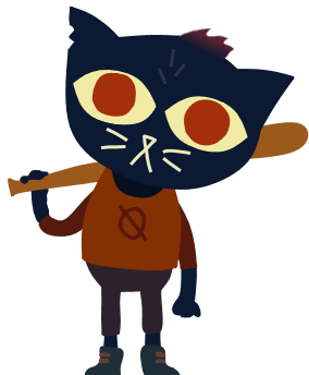 Mae Borowski is the cat-like main character of the 2017 adventure game Night in the Woods. She’s often snarky and sarcastic but acts compassionately towards her close friends. During a scene in which she attends a college party with her friend Bae, she meets and is immediately smitten by a woman named Bombshell, who she bonds with through an improvised secret handshake. One of the game’s writers, Scott Benson, has identified Mae as pansexual and Bombshell as a lesbian on his CuriousCat page.