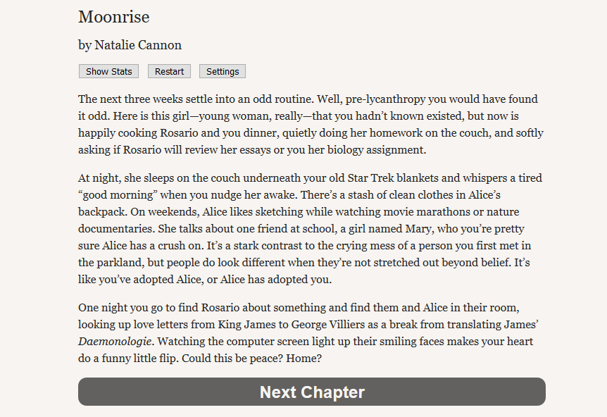 - Cannon, N. (n.d.). Moonrise. Retrieved from https://www.choiceofgames.com/user-contributed/moonrise/#utm_medium=web&utm_source=ourgames
